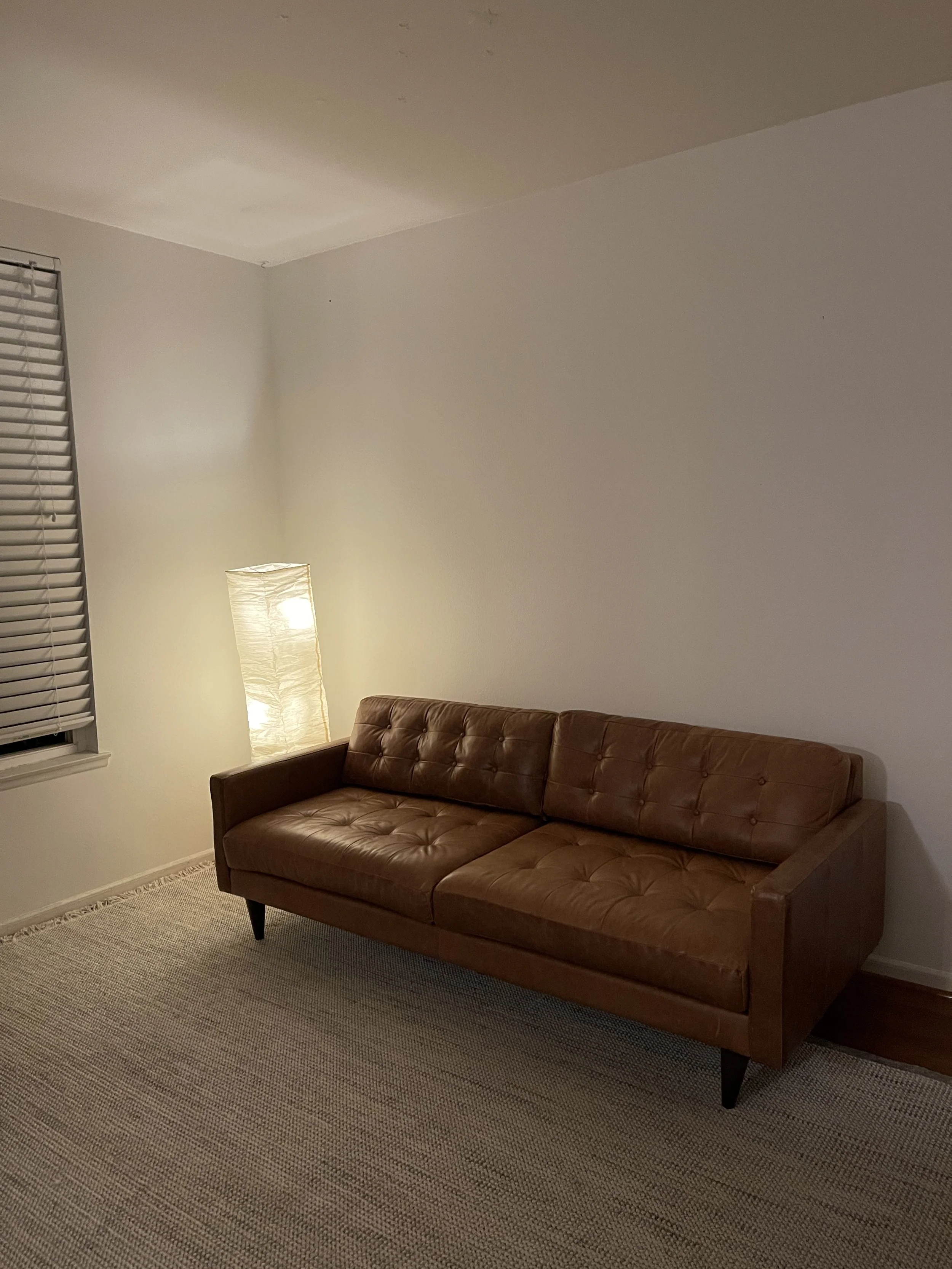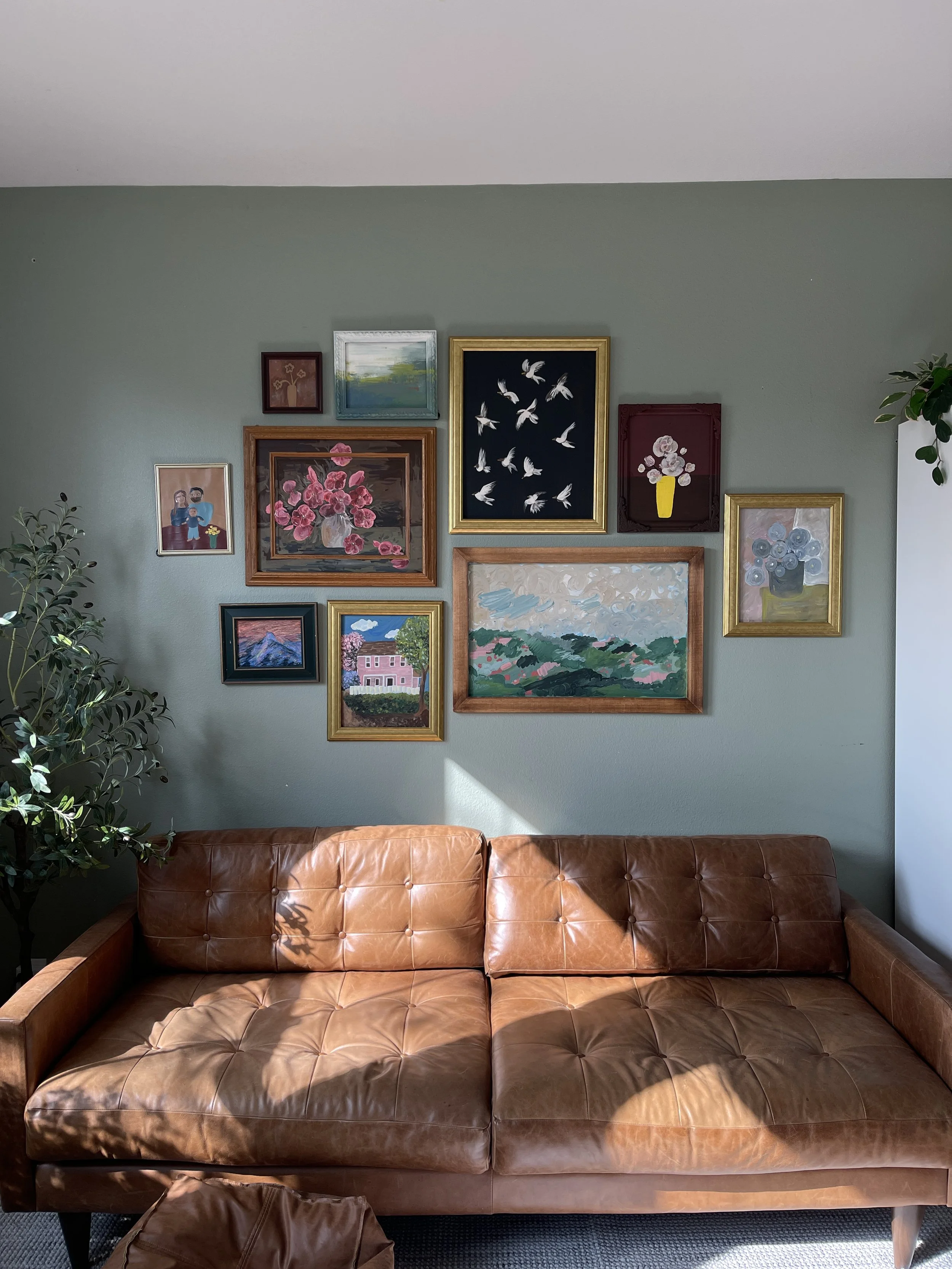 We recently painted our living room white. Previously it was a sage green color, painted by the former resident. It was a pretty color and I felt like we made it work well with a gallery wall of paintings above the couch, but it didn’t feel 100% like us. We wanted the space to feel more open and a bit more modern. I really wanted to embrace the clear thinking/blank slate feeling white offers with more minimal decor, so once it was painted, l didn't want to hang the gallery wall again, but I knew it still needed some kind of texture or art so that it wouldn’t feel completely empty!